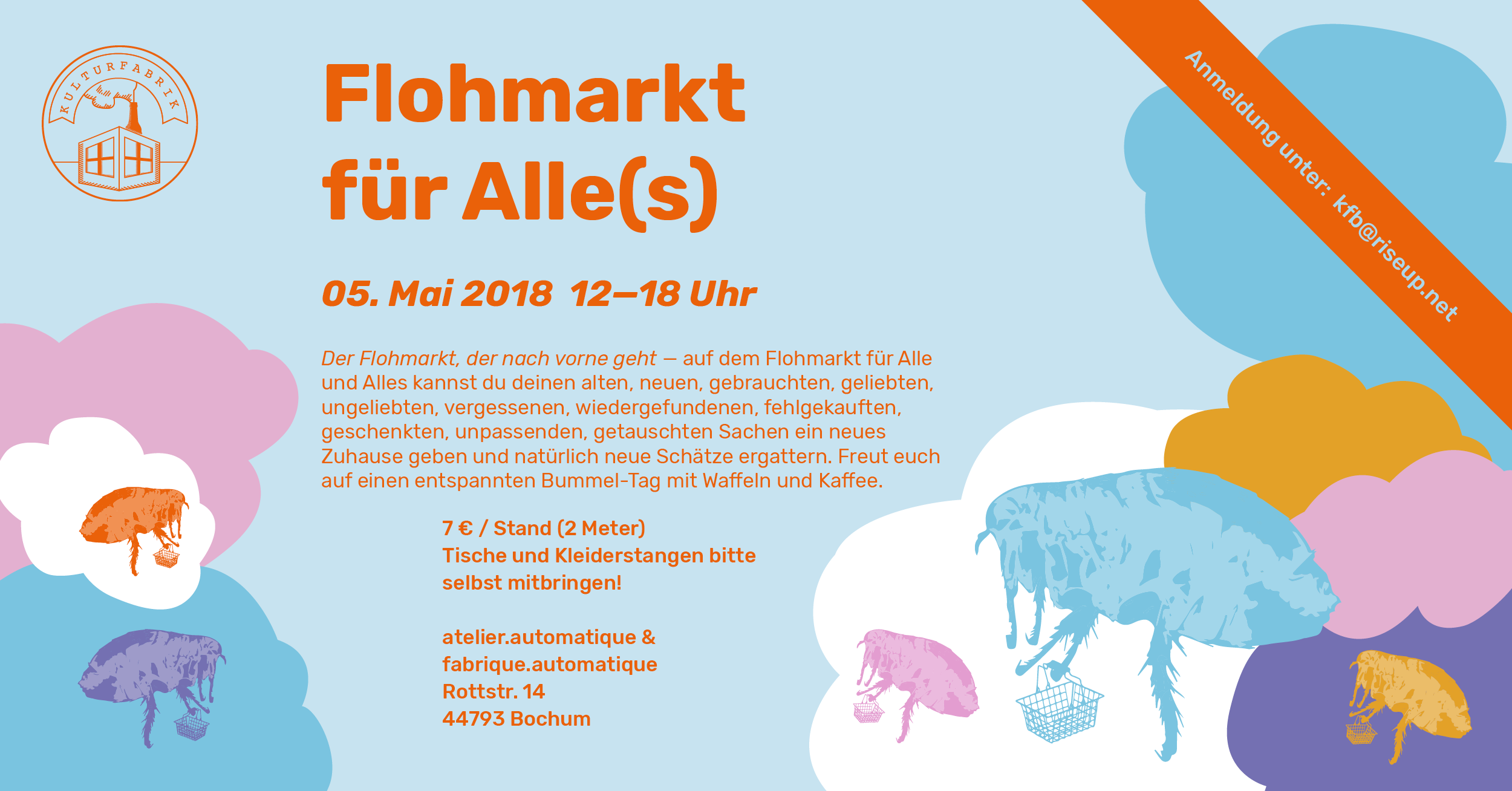 Der Flohmarkt, der nach vorne geht — auf dem Flohmarkt für Alle und Alles kannst du deinen alten, neuen, gebrauchten, geliebten, ungeliebten, vergessenen, wiedergefundenen, fehlgekauften, geschenkten, unpassenden, getauschten Sachen ein neues Zuhause geben und natürlich neue Schätze ergattern. Freut euch auf einen entspannten Bummel-Tag mit Waffeln und Kaffee.